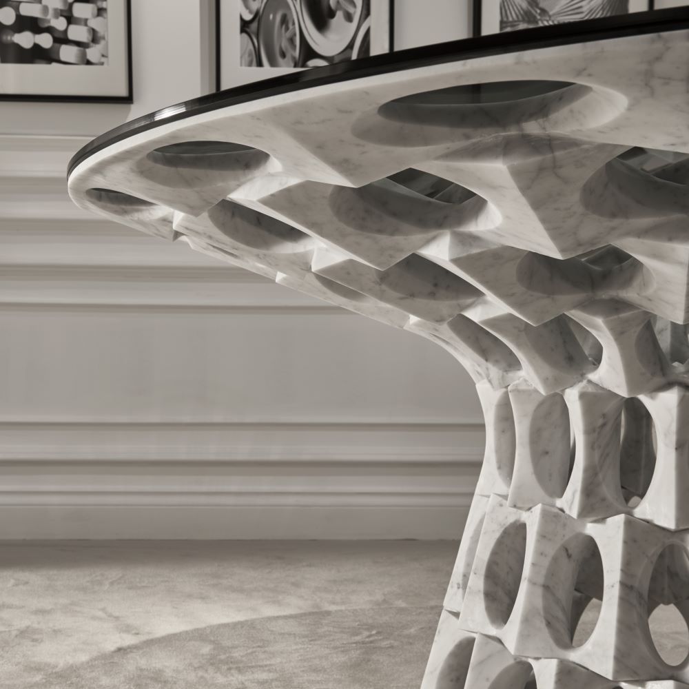 More than just a table, Ginevra is a statement of discerning taste. Carrara Statuarietto marble - the very definition of luxury and timeless appeal - elevates any space with its inherent nobility. Each unique veining pattern tells a story of geological artistry, making every table a one-of-a-kind masterpiece that radiates quiet sophistication.